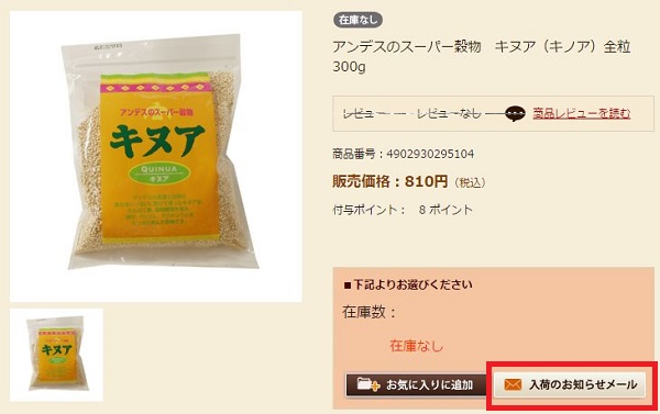 どうしても通販で買いたいという場合は、「入荷のお知らせメール」をクリックして入荷待ちするといいでしょう。